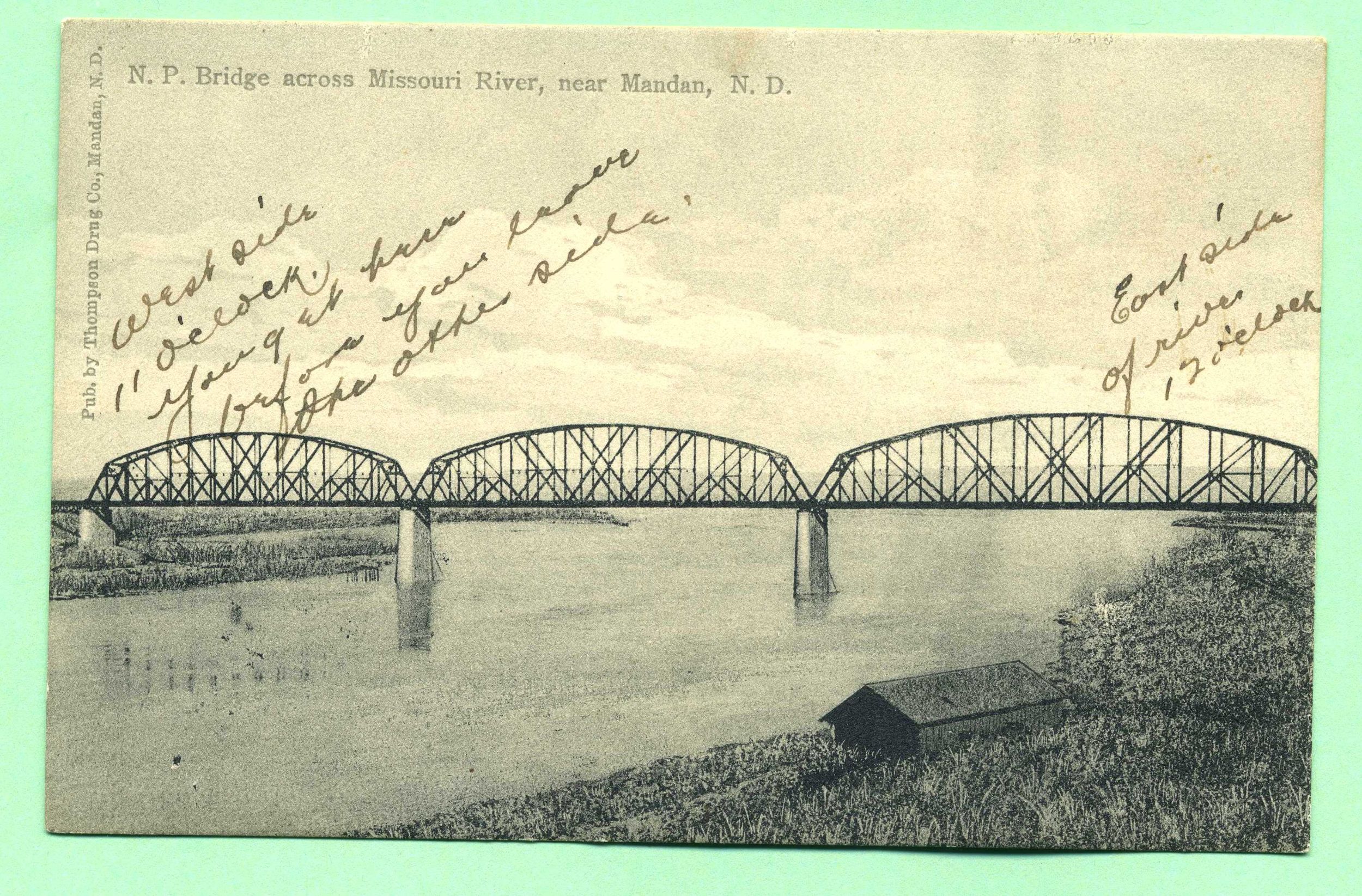 Mandan SD - N P Bridge over Missouri River- Chas E Morris card