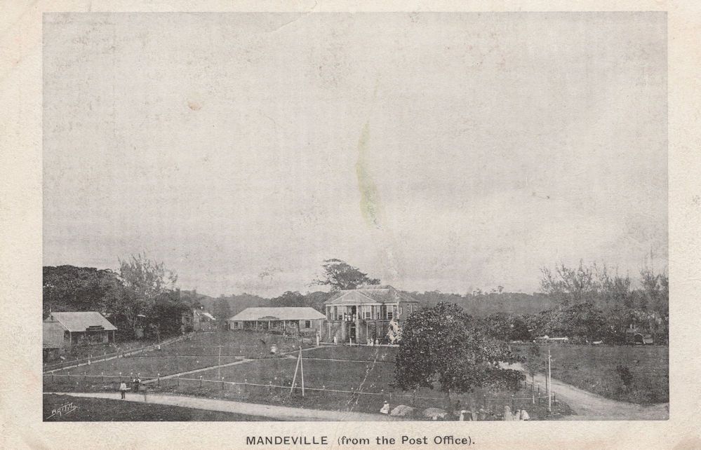 bg465 A rare Jamaican postcard with a handling place to allow and some lighter places graded vg minus unused condition with great local character with this rare post office view of Mandeville around 115 years ago.