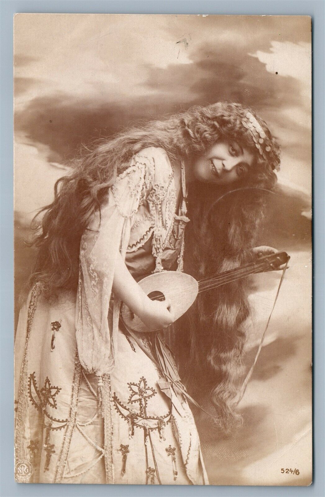 MANDOLIN PLAYER ANTIQUE REAL PHOTO POSTCARD RPPC