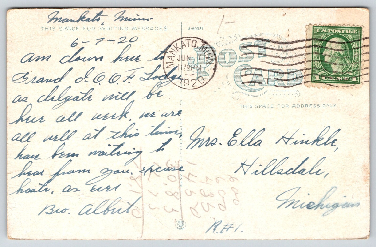 Mankato Minnesota~Red Jacket Bridges~River~Hill~Sunset~Reflection~1920 Postcard