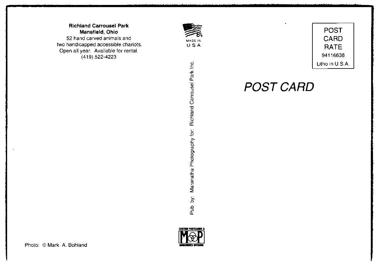 Mansfield Ohio Richland Carousel Park Postcard
