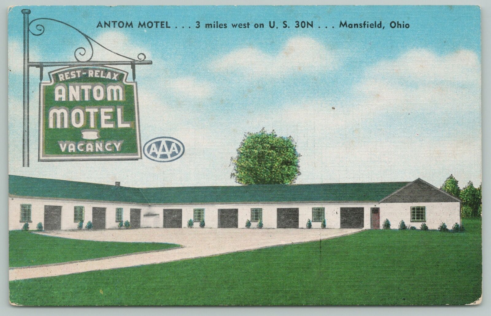 Mansfield Ohio~Antom Motel Entrance~1940s Linen Postcard