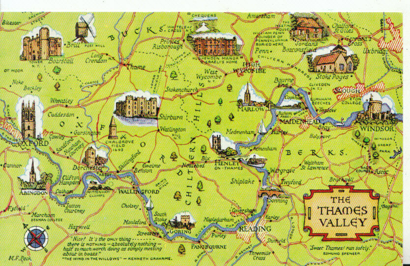Postcard Description: Map Postcard - The Thames Valley - Showing Interesting Places