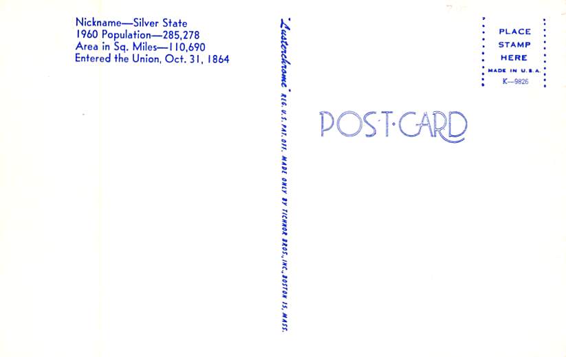 Nevada USA top011569: Maps Year Date of Postcard, or Postal Used / Year Used: Unused Grade: 1 Size: R Grading Scale: Grade 1= Perfect corners Grade 2= Very Minimal corner wear, no creases Grade 3= Some co ... Read More