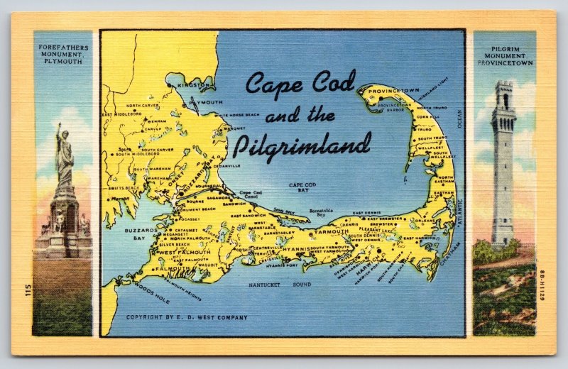Maps~Caoe Cod Forefathers Monument & Pilgrim Monument~Vintage Postcard