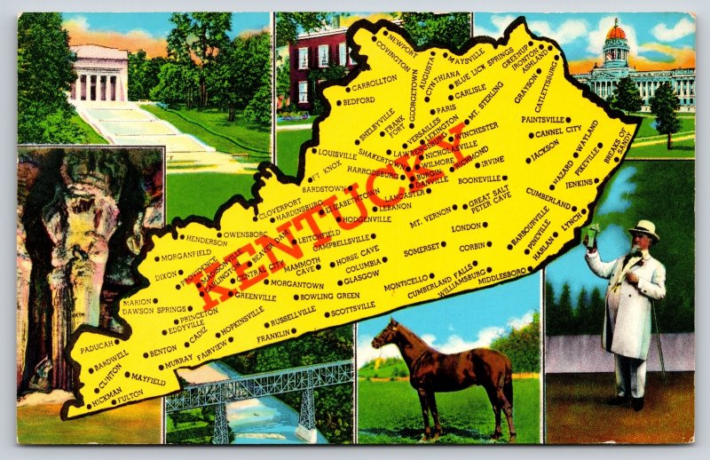 Maps~Kentucky Map & 7 Views Key On Bacl~Vintage Postcard