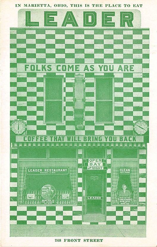 Marietta OH Leader Art Deco Restaurant Two Clocks.