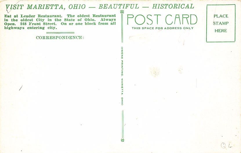 Marietta OH Leader Art Deco Restaurant Two Clocks Postcard