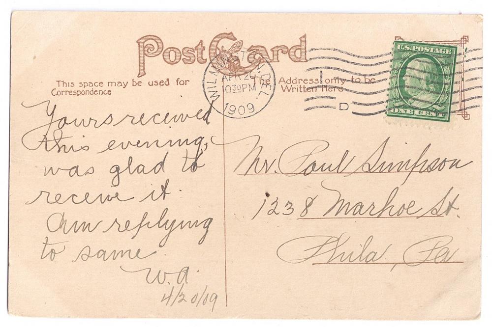 Postmark: Â Â Â Â Â 1909 Wilmington DE