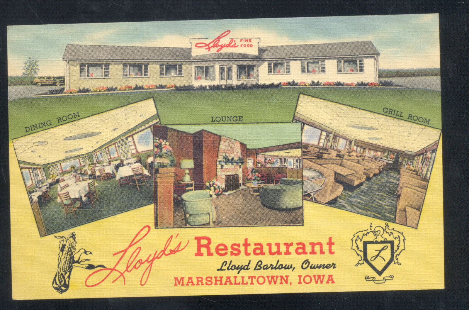 MARSHALLTOWN IOWA LLOYD'S RESTAURANT VINTAGE LINEN ADVERTISING POSTCARD