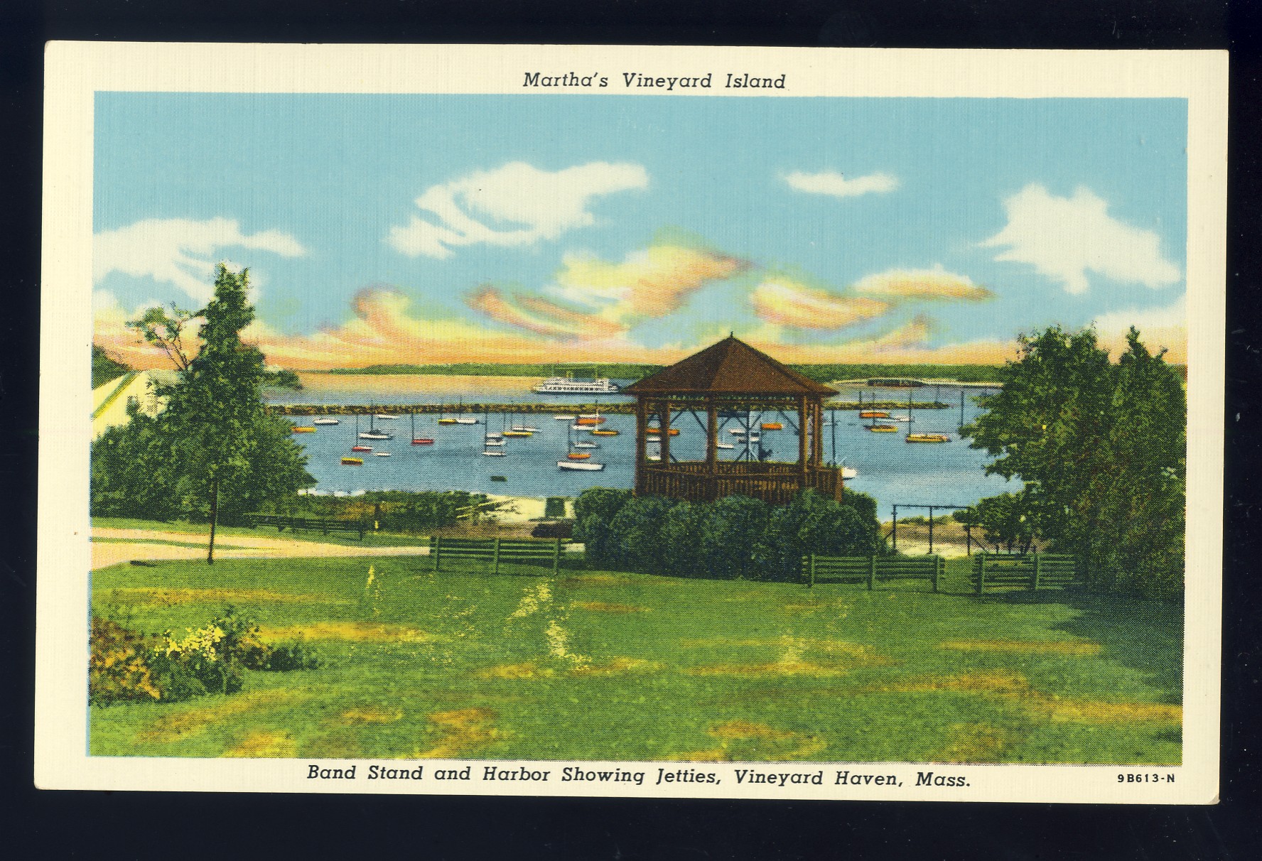 Martha's Vineyard, Massachusetts/MA Postcard, Band Stand & Harbor, Cape Cod
