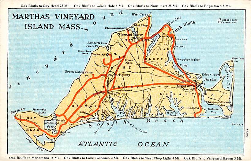 Martha's Vineyard, Nantucket Islands, Mass USA Map Postcard Unused,