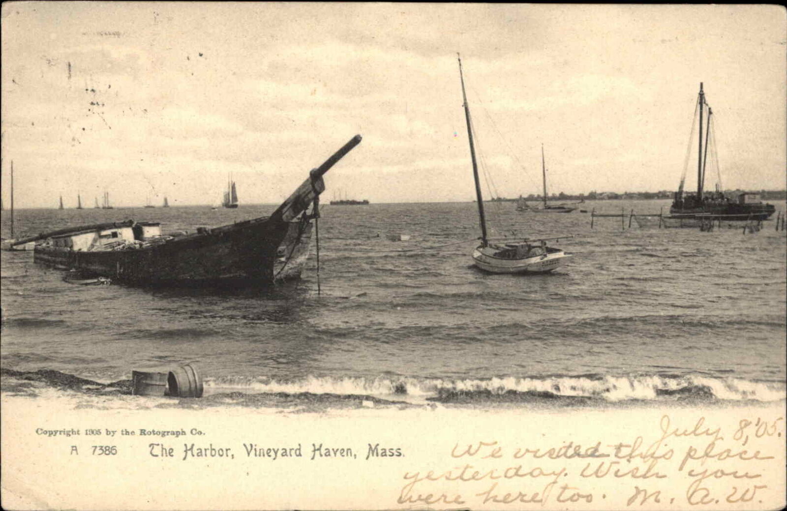 Martha's Vineyard - Vineyard Haven Harbor Boats c1905 Used Postcard