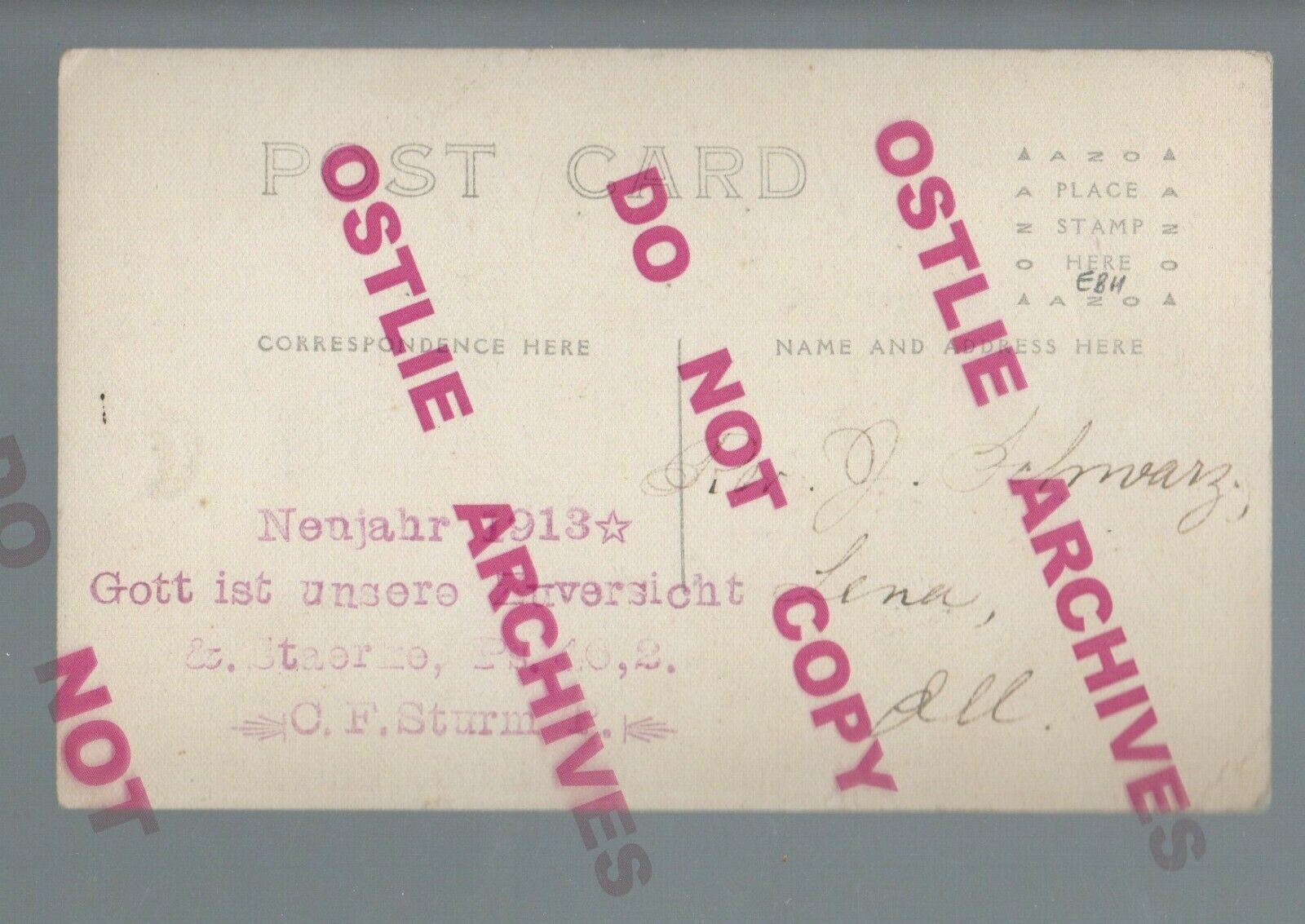 Here is a nice REAL PHOTO postcard view showing SOUTH VIEW OF WOMENS DEPT. EMMEUS ASYLUM MARTHASVILLE MO. printed on the front with a NEW YEARS GREETING 1913 on the back in GERMAN? along with the name C.F. STURM P. stamped----it is an AZO card. *********The OSTLIE ARCHIVES watermark is NOT ON THE CARD----I have been having a number of people copy the images*********** It is in VERY GOOD CONDITION with light wear, smudging, marks from developing------------SEE THE SCANS. THANKS FOR BIDDING! FOR BUY IT NOW CARDS PAY ONLY ONE SHIPPING CHARGE NO MATTER HOW MANY CARDS YOU BUY---------JUST ADD THE PURCHASE to the SHOPPING CART and when you are done just PAY FOR ALL CARDS AT ONCE with just ONE SHIPPING CHARGE!! Shipping is $3.50 to US DESTINATIONS---packages are shipped FIRST CLASS PACKAGE RATE with TRACKING NUMBERS! International shipping is $13.50 with Hip Standard International Shipping with Tracking---TOO MANY PACKAGES ARE BEING LOST ON FOREIGN SHIPMENTS---at least with this there is TRACKING TO HOPEFULLY SEE WHERE THEY GO----if this doesn't work I WILL STOP ALL FOREIGN SHIPPING. PAY ONLY ONE SHIPPING CHARGE NO MATTER HOW MANY CARDS YOU BUY. 14 Day Return policy if item is Grossly different than the description and the item is returned in the same condition as purchased.