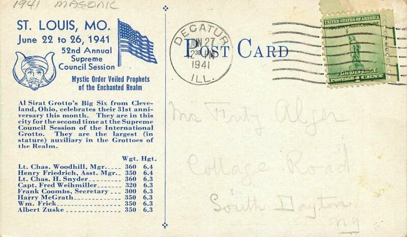 Masonic Temple 1941 St Louis Missouri Postcard 6108