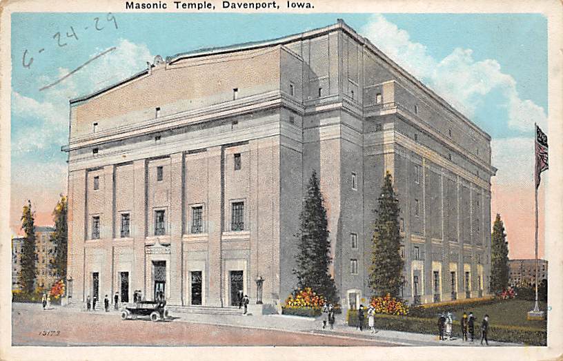 Masonic Temple Davenport, Iowa Postcard - 1929