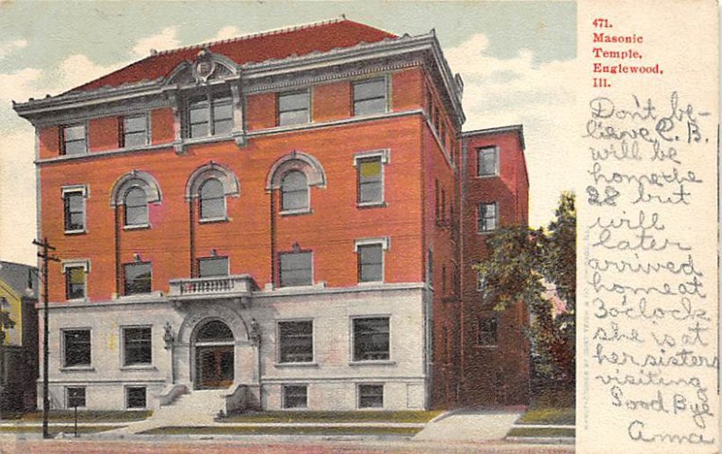 Masonic Temple Englewood Illinois Postcard - PU Unknown