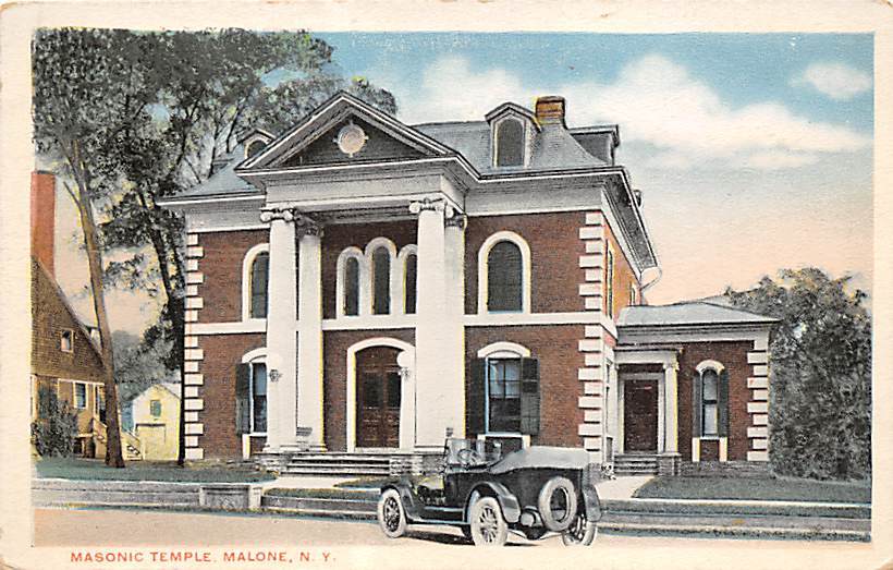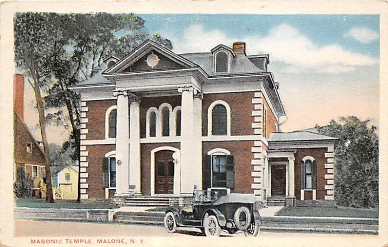 Masonic Temple Malone New York Postcard - Unused Grade: 2 Size: R - Regular size: Approx 3 1/2 X 5 1/2 inch (9 cm X 14 cm) Grading Scale: Grade 1 = Perfect corners Grade 2 = Very Minimal corner wear, no crease ... Read More