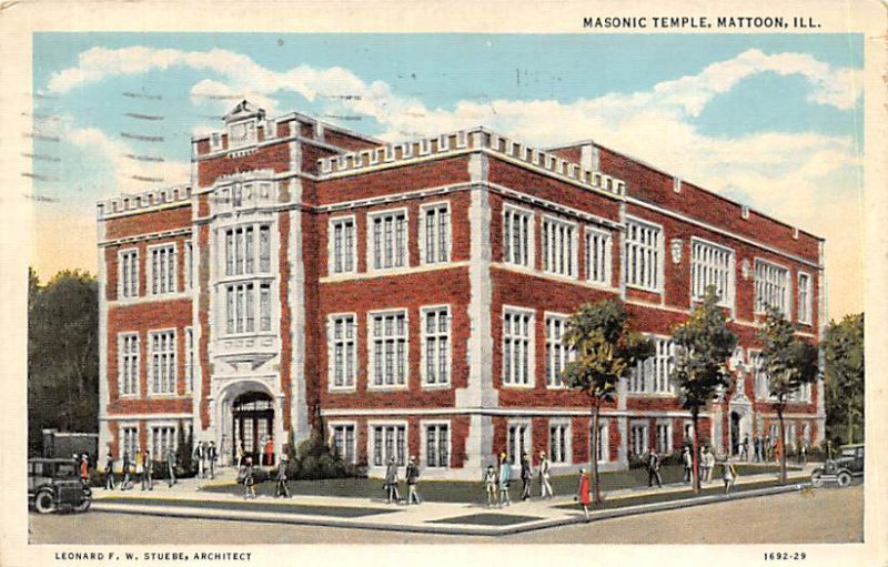 Masonic Temple Mattoon Illinois Postcard - 1938