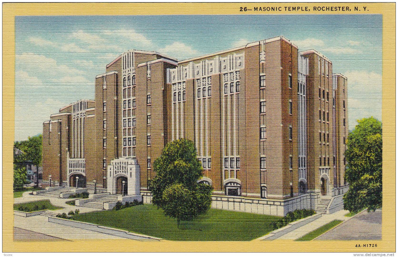 Masonic Temple, Rochester, New York, 30-40s :: Postcard, 3.5" by 5.5", Linen, EX