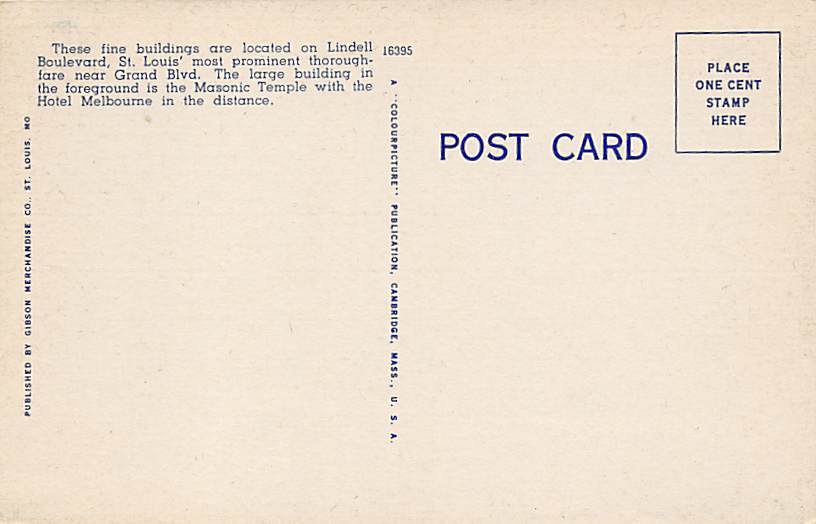 Masonic Temple Saint Louis Missouri Postcard - Unused
