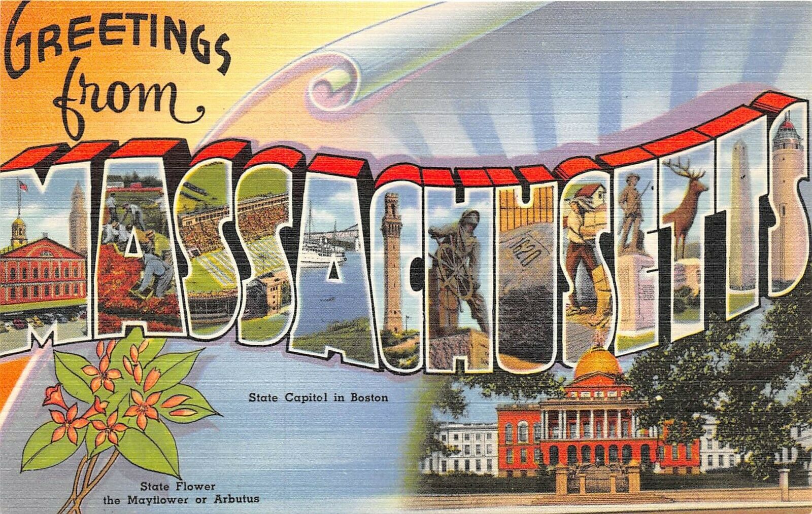 MASSACHUSETTS 1940-50s LARGE LETTER Greetings Postcard