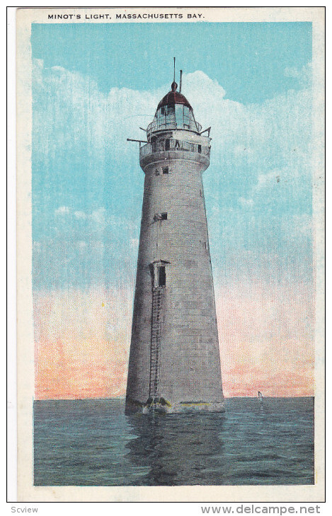 MASSACHUSETTS BAY; Minot's Light House, 10-20s :: Postcard, 3.5" by 5.5", Litho, EX