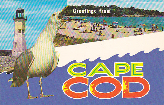 Massachusetts Greetings From Caape Cod Lighthouse and Beach Scene