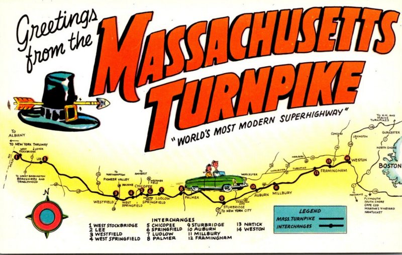 Massachusetts Greetings From The Masschusetts Turnpike With Map