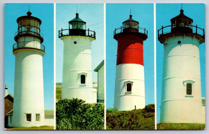 Massachusetts~Cape Cod Lighthouses Multi-View~Highland~Nauset~Vintage Postcard