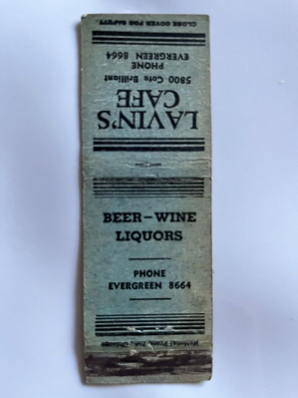 Matchbook Cover~Lavin’s Cafe~Chicago~KB17