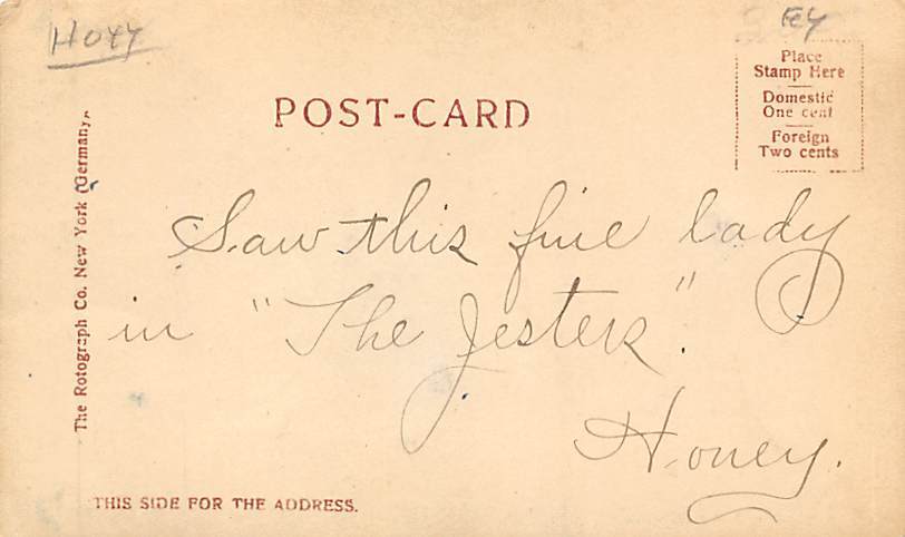 Maude Adams Postcard View Postcard Backing, Grade: 1 - glitter on card, , Size: Regular Size Postcard - approximately 3 1/2 inch x 5 1/2 inch (9 CM x 14 CM) Grading Scale: Grade 1 = Perfect corners Grade 2 = Ve ... Read More