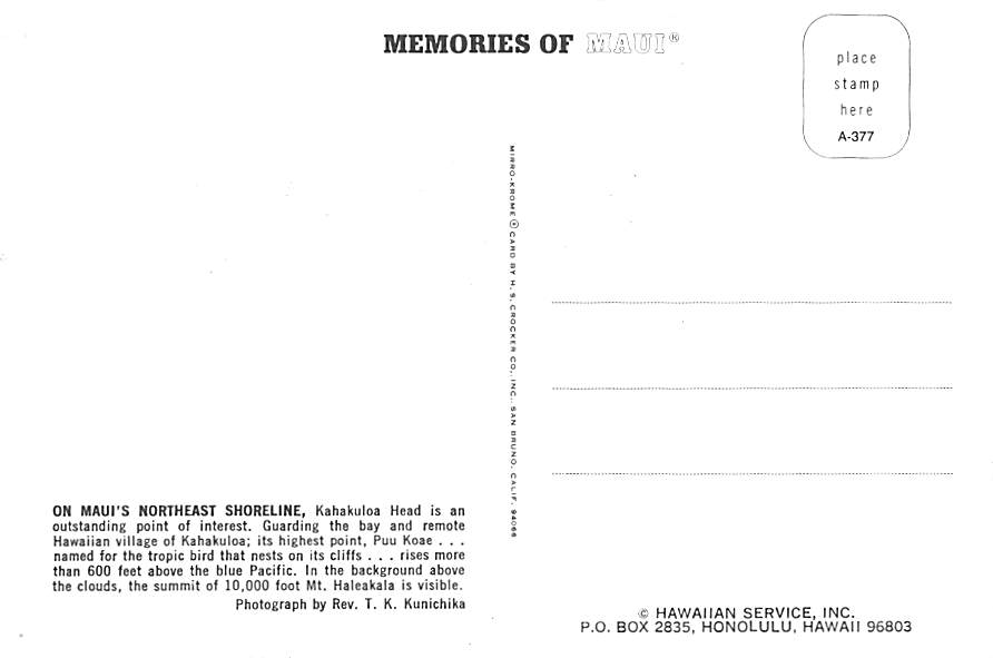 Maui's Northeast Shore - Hawaii Grade: 1 Category: Continental Size Postcard, Approx 4 in x 6 in (10 cm x 15.25 cm) Product Size: Continental size: 4X6 inches (10.5 cm x 15 cm) Grading Scale: Grade 1 = Perfect ... Read More