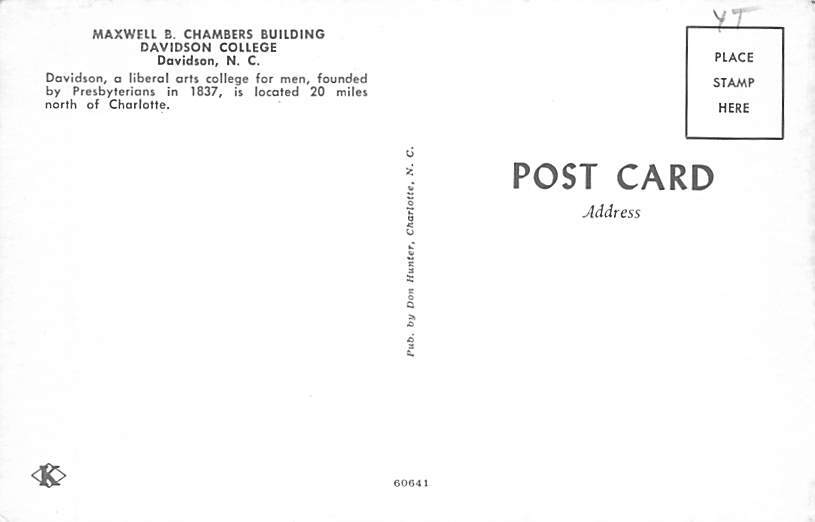 Maxwell B. Chambers Building, Davidson College Davidson, North Carolina NC Postcard - Unused