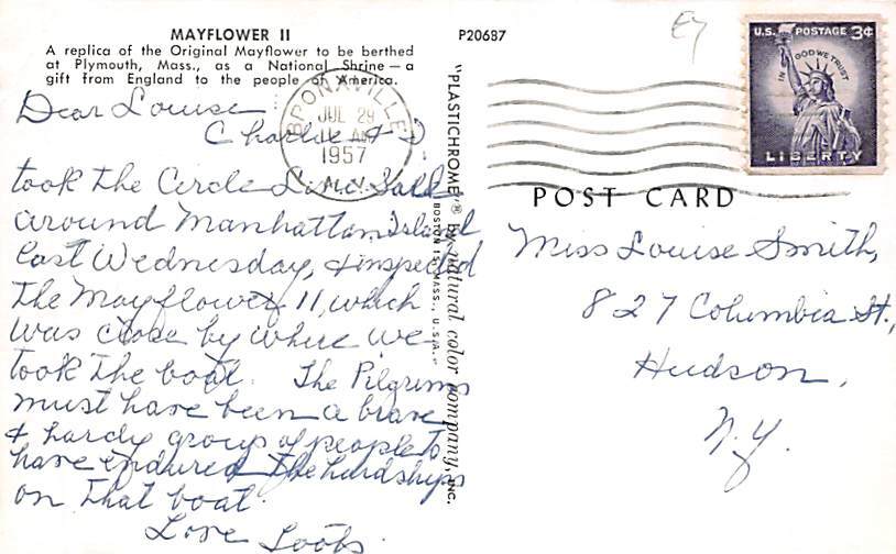 Mayflower II Sail Boat Plymoth Mass Postcard 1957, Grade: 4, , Size: Regular Size Postcard - approximately 3 1/2 inch x 5 1/2 inch (9 CM x 14 CM) Grading Scale: Grade 1 = Perfect corners Grade 2 = Very Minimal ... Read More