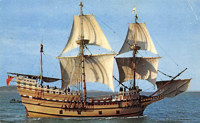 Mayflower II Sail Boat Plymoth Mass Postcard 1957,