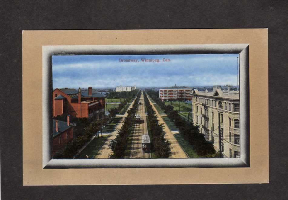 MB Broadway St Ave Trolley Cars Winnipeg Manitoba Carte Postale Canada Postcard
