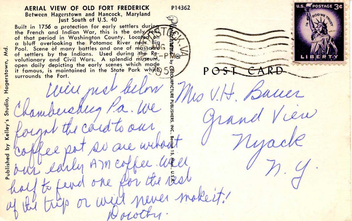 MD - Fort Frederick. Aerial View --- * Grading of Postcards MINT (M): Perfect condition, no apparent blemishes, flaws, postally unused, may have some writing on back. NEAR MINT (NM): Like new, image is uncompromis ... Read More