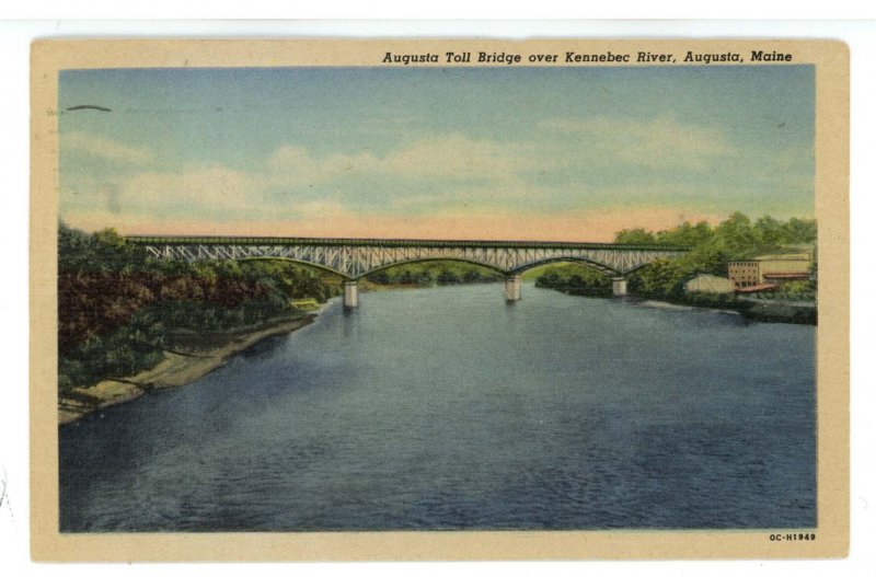 ME - Augusta. Augusta Toll Bridge Over Kennebec River ca 1950