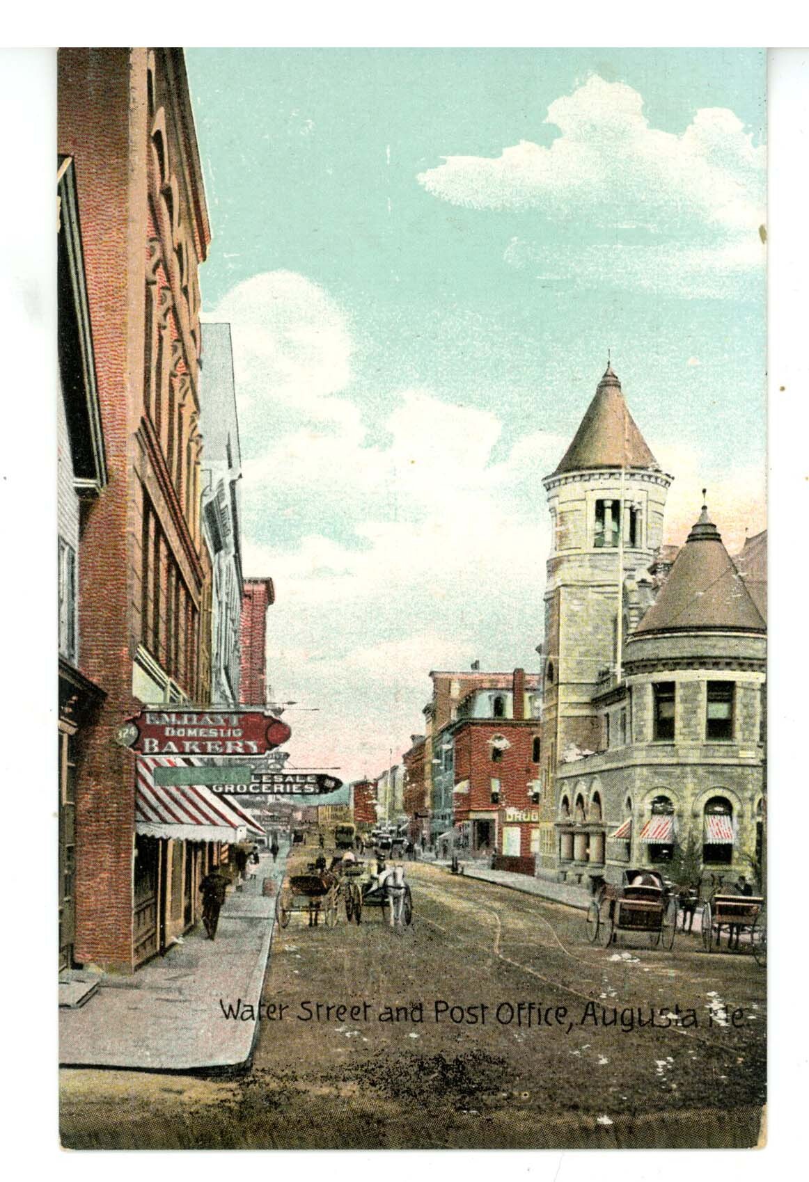 ME - Augusta. Water Street looking North, Post Office (chips)