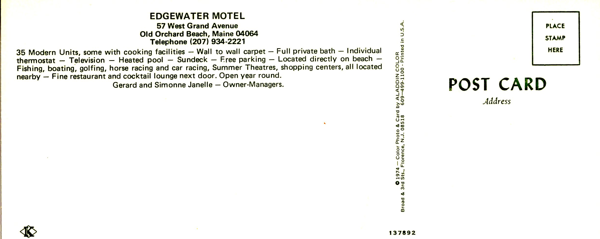 ME - Old Orchard Beach. Edgewater Motel (3.5" X 8.25").