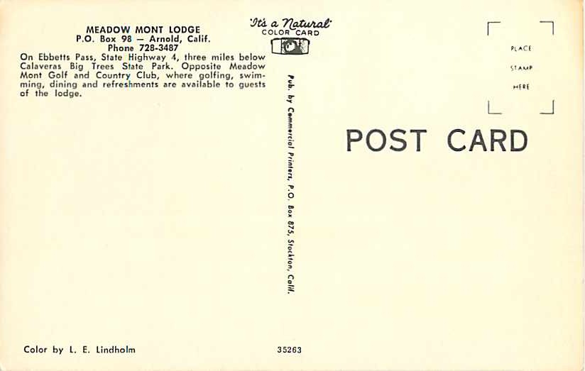 Meadow Mount Lodge Arnold California CaType of Postcard: STANDARD SIZE CHROME