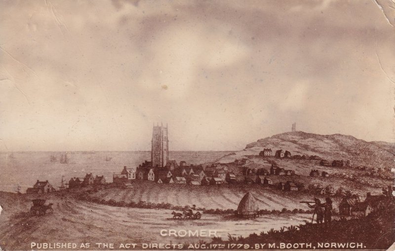 ts180 I have researched this postcard but so far without success - this card reads "Cromer As The Act Directs 17th Aug 1779" - it would seem a Norwich painting and this souvenir is real photo from around 1910 - it has some creases and whiting to its very borders in small places so buyer must allow - but a local historian could strike gold if they know the Act this antique Cromer postcard is referring to.