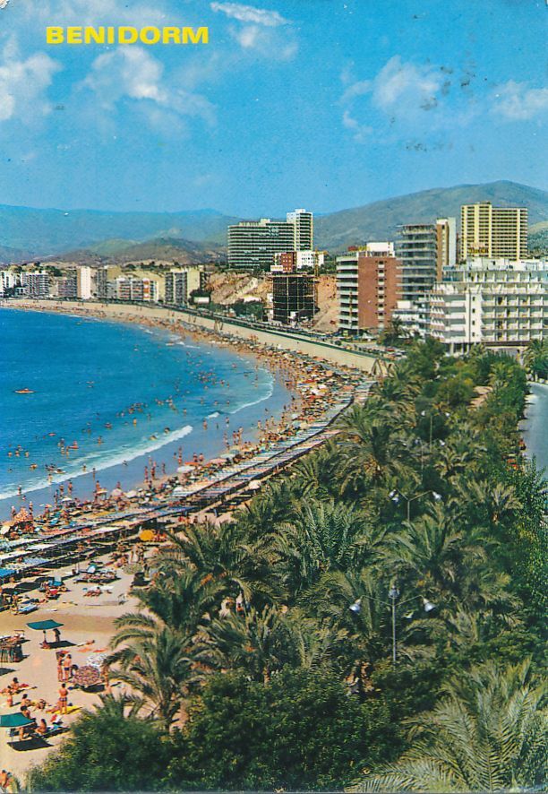 Mediterranean Beach Resort Scene - Benidorm, Spain - pm 1975