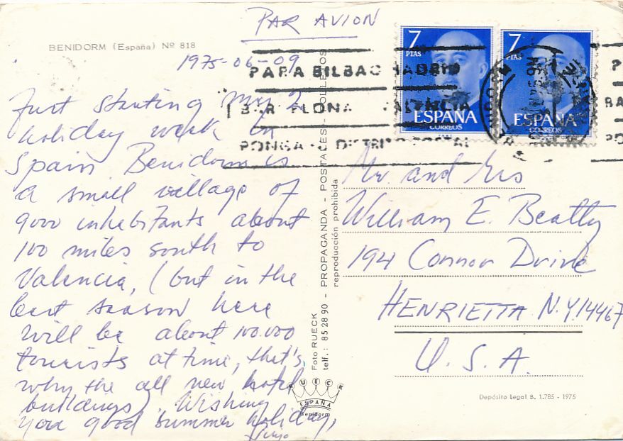 Postmarked at Benidorm on June 9, 1975.