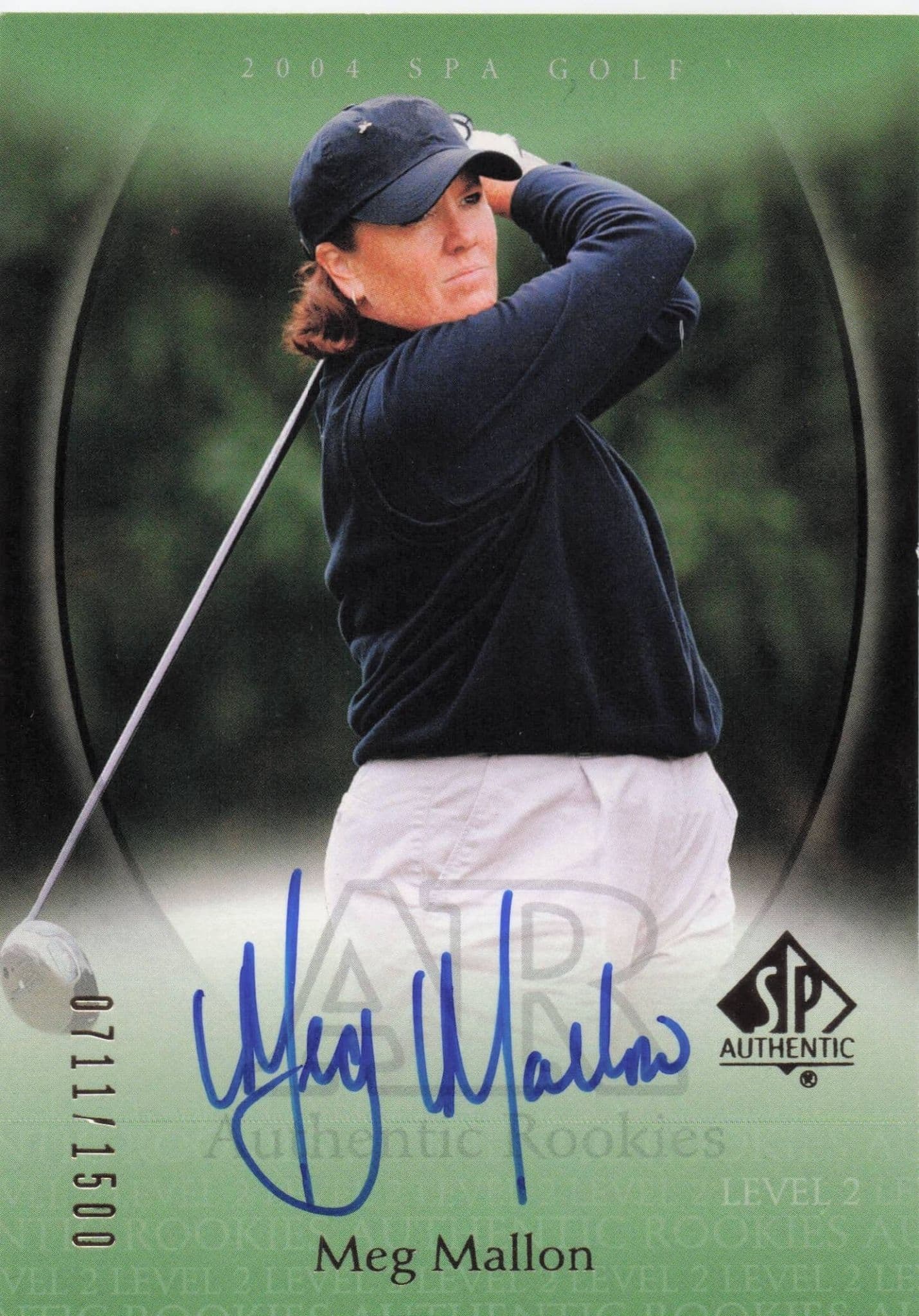 GB03014 This is an original personally autographed Authentic Rookies 2004 card for Meg Mallon who has personally hand signed the souvenir and which their signature has been fully authenticated by the publishers (see below and image 2) in brand new mint condition. You won't source better.