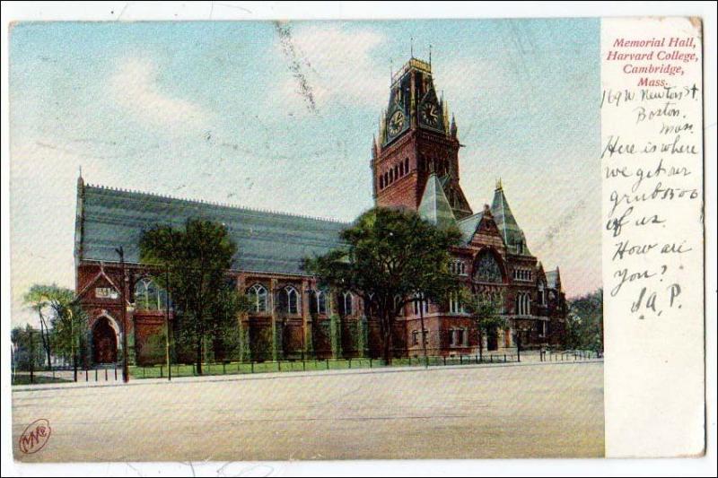 Memorial Hall, Harvard College, Cambridge MA PM 1906 / UB / VG / Printed Grading of Postcards MINT (M): Perfect condition, no apparent blemishes, flaws, postally unused, may have some writing on back. NEAR MINT ( ... Read More