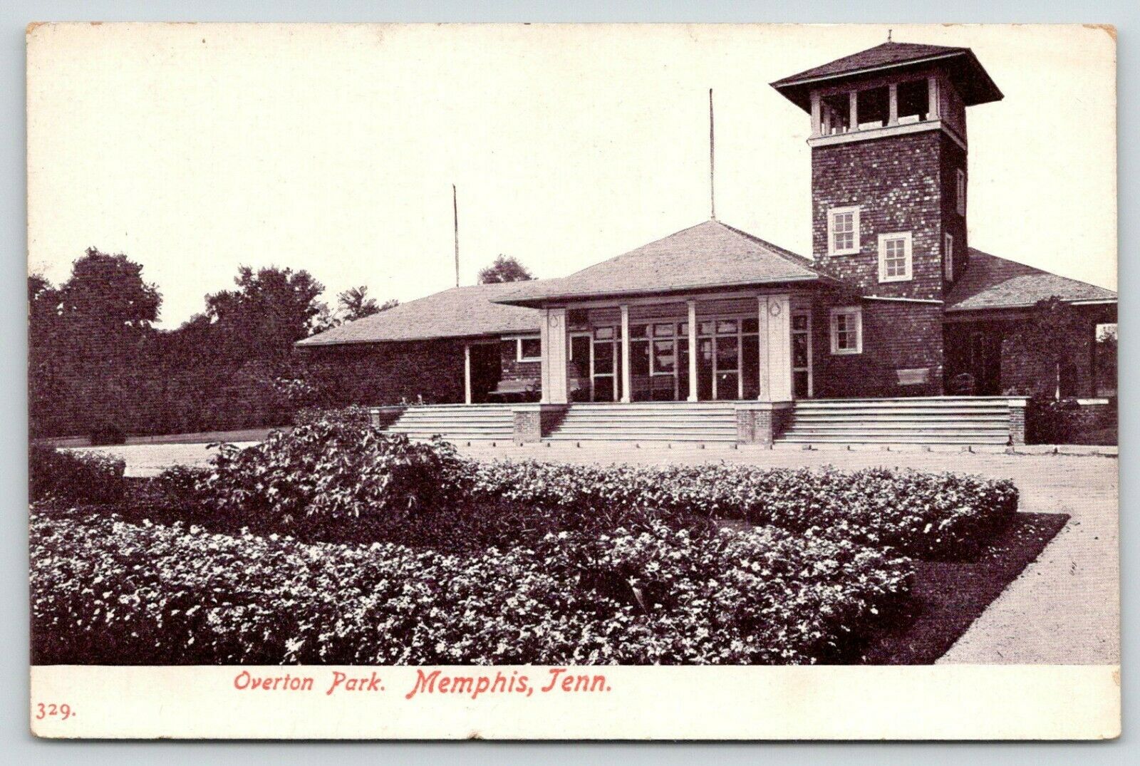 Memphis Tennessee~Overton Park Pavilion~Open Tower~Gardens~c1910 Sepia Postcard