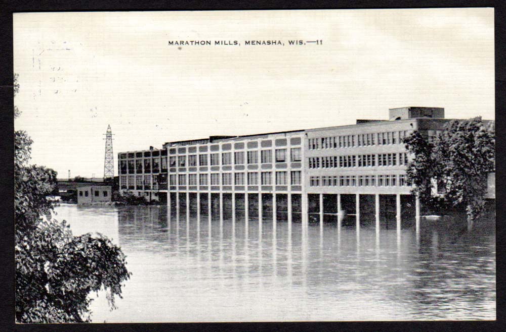 Menasha WI Marathon Mills Linen B&W Postcard