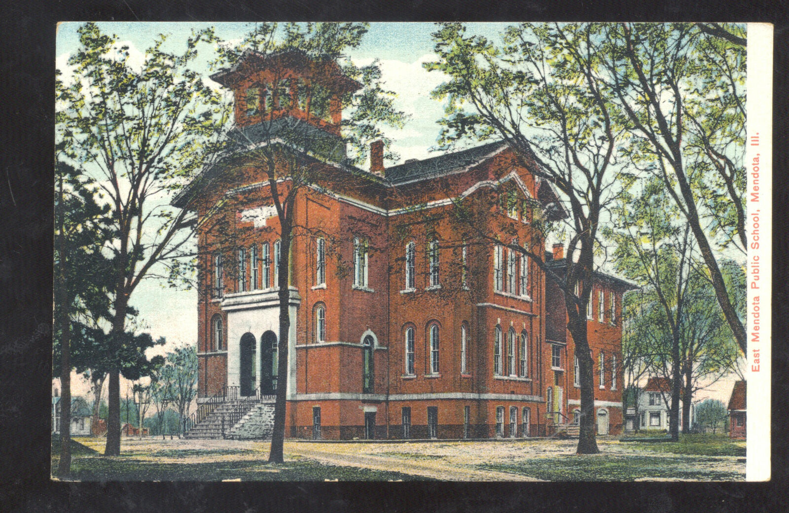 MENDOTA ILLINOIS PUBLIC SCHOOL BUILDING VINTAGE POSTCARD